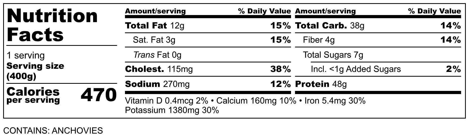 Made in a kitchen that processes eggs, fish, milk, peanuts, sesame, shellfish, soy, tree nuts, and wheat.