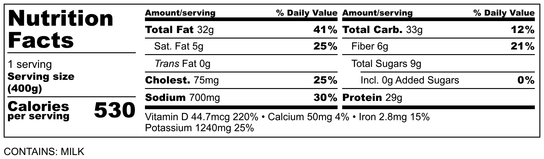 Calories 530kcl Protein 29g Carbs 33g Fat 32g