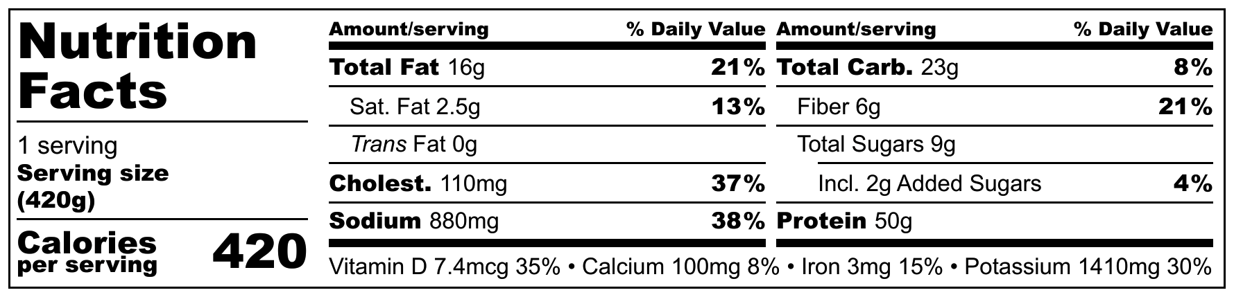 Calories 370kcl Protein 50g Carbs 23g Fat 16g