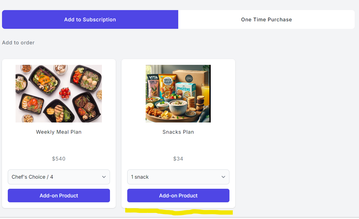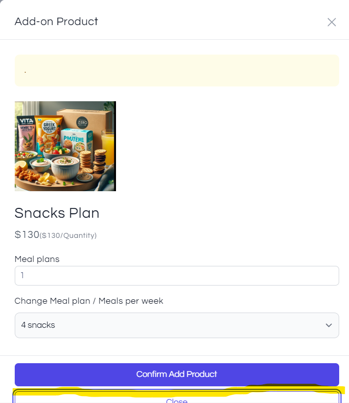 Confirm your add-on. You will be able to pick snacks along with your weekly meal choice selections and the snacks will be delivered along with your meals.