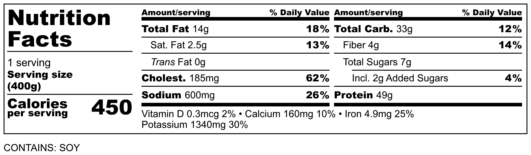 卡路里450 kcl蛋白質49 g碳水化合物33 g脂肪14 g